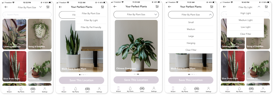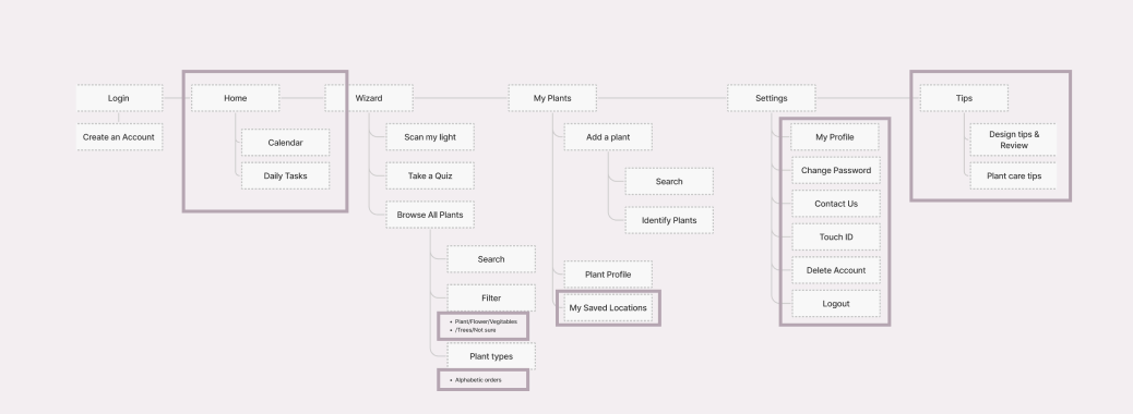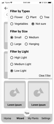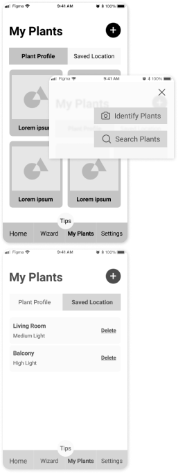 The original UX design requires several steps to check plant profiles, so I created two taps on the My plants’ main page to overview the whole contents easily.