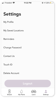 By moving ‘my saved locations’ and ‘reminders’ into 'My Plants' page, the setting page remained simpler.
