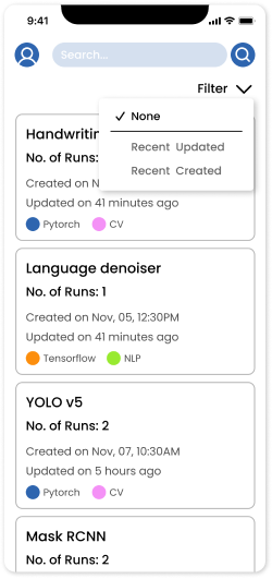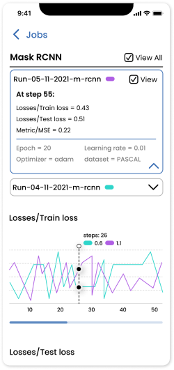Milog allows data scientists to monitor numerous algorithm performance on the go by searching its job’s name or filtering recently updated and created jobs. Milog displays the massive model training status with the simple and clean user interface.